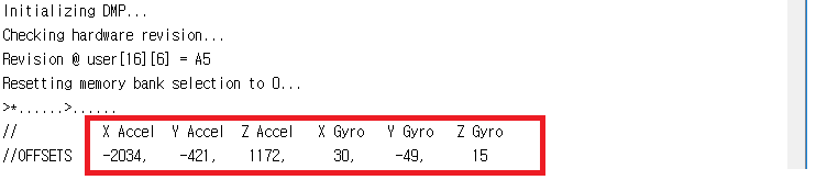 잠시후 작업이 시작되고 다음과 같이 Calibration을 위한 Offset 측정치가 표시된다.