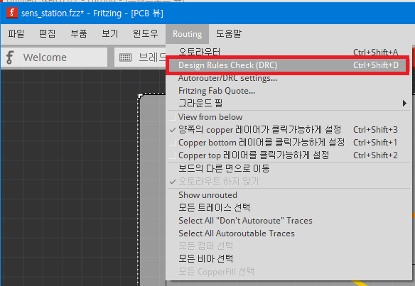 다음으로 해주어야 할 작업은 설계한 PCB가 과연 PCB보드 형태로 생산할 수 있는 사양인지 Check하는 작업을 수행해 보아야 한다.