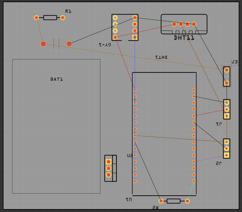 부픔의 재배티가 완료되면 실제 부품간 회로가 연결되도록 내부 구리판 연결을 설정해 주어야 하는데 케이블로 연결할 때와 달리 PCB판위의 구리판은 서로 중첩되어서는 안된다는 제약 사항 때문에 상당히 복잡해진다.