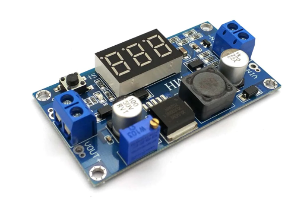 작은 가변저항기 노브를 돌리면서 일일히 출력 전압을 측정하는 번거로움을 줄이기 위해 다음과 같이 전압표시 display가 함께 내장되어 있는 모듈도 있다.