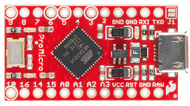 아두이노사의 오리지널 아두이노 마이크로와 동일한 프로세서를 사용하고 비슷한 성능을 가지지만 조금 다른 모양으로 미국 Sparkfun사에서 나온 기동이 아두이노 프로 마이크로이다.