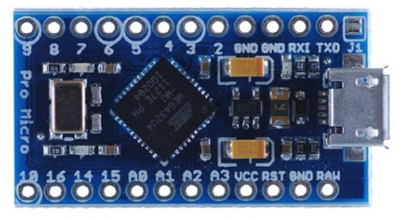 아두이노사의 오리지널 아두이노 마이크로와 동일한 프로세서를 사용하고 비슷한 성능을 가지지만 조금 다른 모양으로 미국 Sparkfun사에서 나온 기동이 아두이노 프로 마이크로이다.