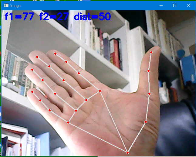 image, text='f1=%d f2=%d dist=%d ' % (finger1,finger2,dist), org=(10, 30),