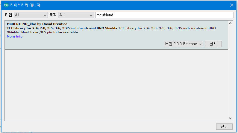 라이브러리 메니저에서 macufriend_kbv를 찾아 설치해주어야 한다.