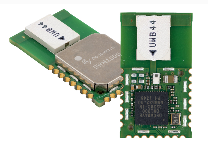 DWM1000 모듈은 위의 DW1000 칩에 안테나 등 기본 소자를 연결하여 사용하기 쉽도록 모듈형태로 제작하여 판매하는 것이다.