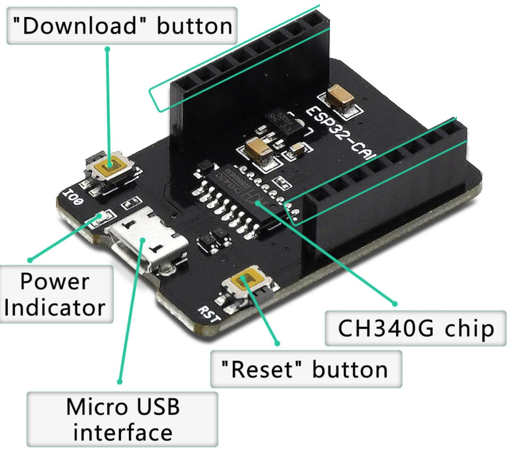 ESP32-CAM Adapter보드는 CH340칩을 이용한 USB Inferface 보드로서 일반 어두 이노 나노 보드처럼 PC에서 제작한 프로그램을 업로드할 수 있고 ESP32-CAM보듈에 전원을 공급할 수 있으며 ESP32-CAM 모듈을 꽃을 수 있는 소켓이 내장되어 있다.