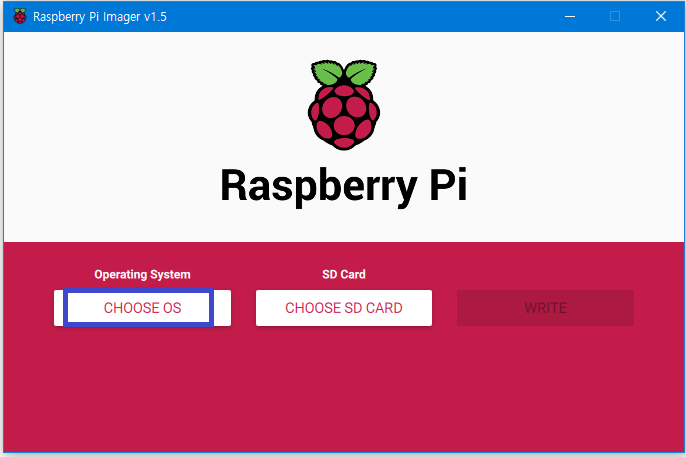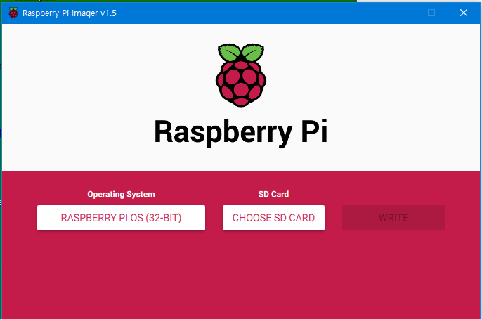 PC에 설치된 Raspberry pi Imager프로그램을 기동시키면 다음과 같은 화면이 표시된다.