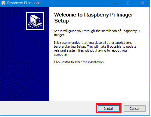 다운로드받은 Raspberry pi Imager 설치 프로그램을 기동시키면 다음과 같은 과정을 거쳐 PC에 Raspberry pi Imager 프로그램이 설치된다.
