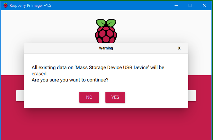 위와 같이 경고메세지가 표시되고 확인하면 다음과 같이 Raspberry PI OS용 SD 제작작업이 시작된다.