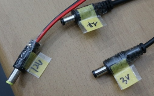 사용할 전원선과 스위치용 케이블을 제외한 나머지 케이블들은 따로 몪어 놓거나 잘라 버리면 되는데, 이떄 케이블 내선들이 노출되어 서로 접촉되지 않도록 주의한다. 그리소 연결된 전원 DC잭들의 전압이 다를 경우 다음과 같이 라벨을 붙혀 놓아야 혼동되지 않는다.