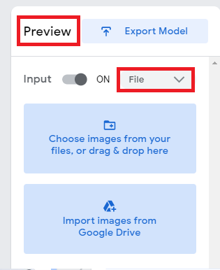 Traing작업을 완료한 후 Preview 메뉴를 선택하고 Input방식을 File로 선택하면 학습된 모델에 대한 검증작업을 해 볼 수 있다.
