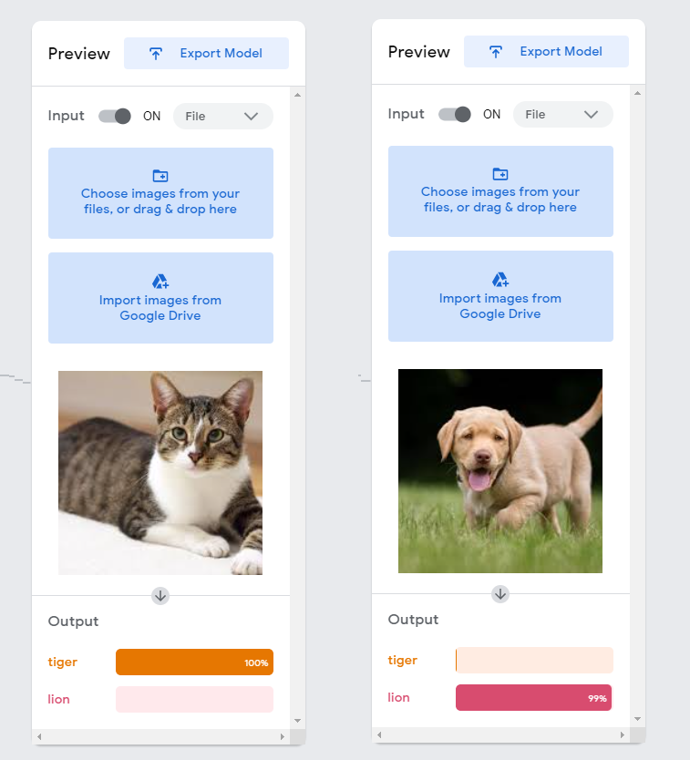 여기에서는 사자,호랑이 두가지 동물들의 이미지를 학습시킨 후 비슷한 동물들의 사진을 주었을 때 어떤 동물인지 AI가 판정하도록 하는 간단한 AI 모델을 만들어 보고자 한다.