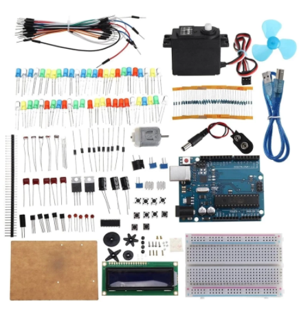 기본적인 아두이노 실습용 부품들이 포함된 학습 키트