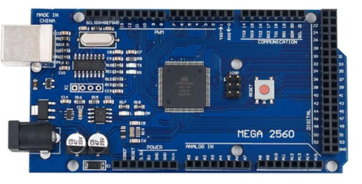 아두이노 메가2560은 아두이노 우노급으로는 사양이 부족할 때 사용하는 상위 기종으로서 무려 70개의 입출력 핀을 사용 가능한 ATmega2560 MCU칩을 기반하기 때문에 다양한 기기의 제어와 응용이